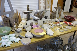 Ruandahilfe und Handarbeitsgruppe bieten weihnachtliche Dinge im Pfarrheim an.