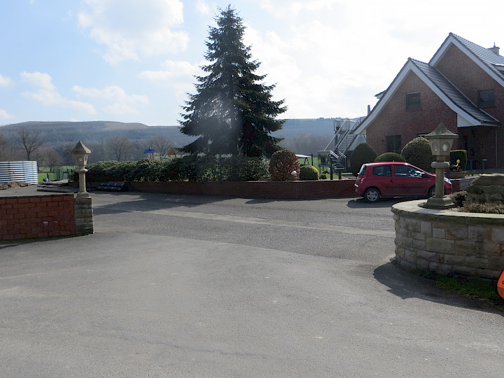 Unser Bild zeigte einen der beiden Lampenköpfe an der Hofeinfahrt zum Hof Hohnhorst, Uffelner Esch.