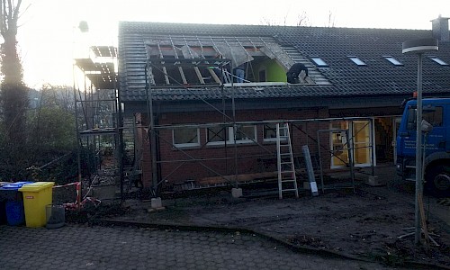 Deutlich schneller ging es dann bei der zweiten Dachgaube. Eine Woche nach Errichtung war die Gaube fertig. Inzwischen ist das Gerüst auch schon abgebaut. Schaut man sich die Dachgauben an, erscheinen sie ganz gelungen.