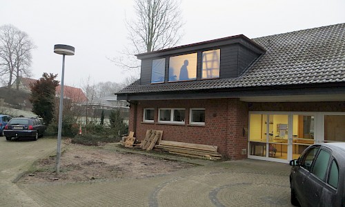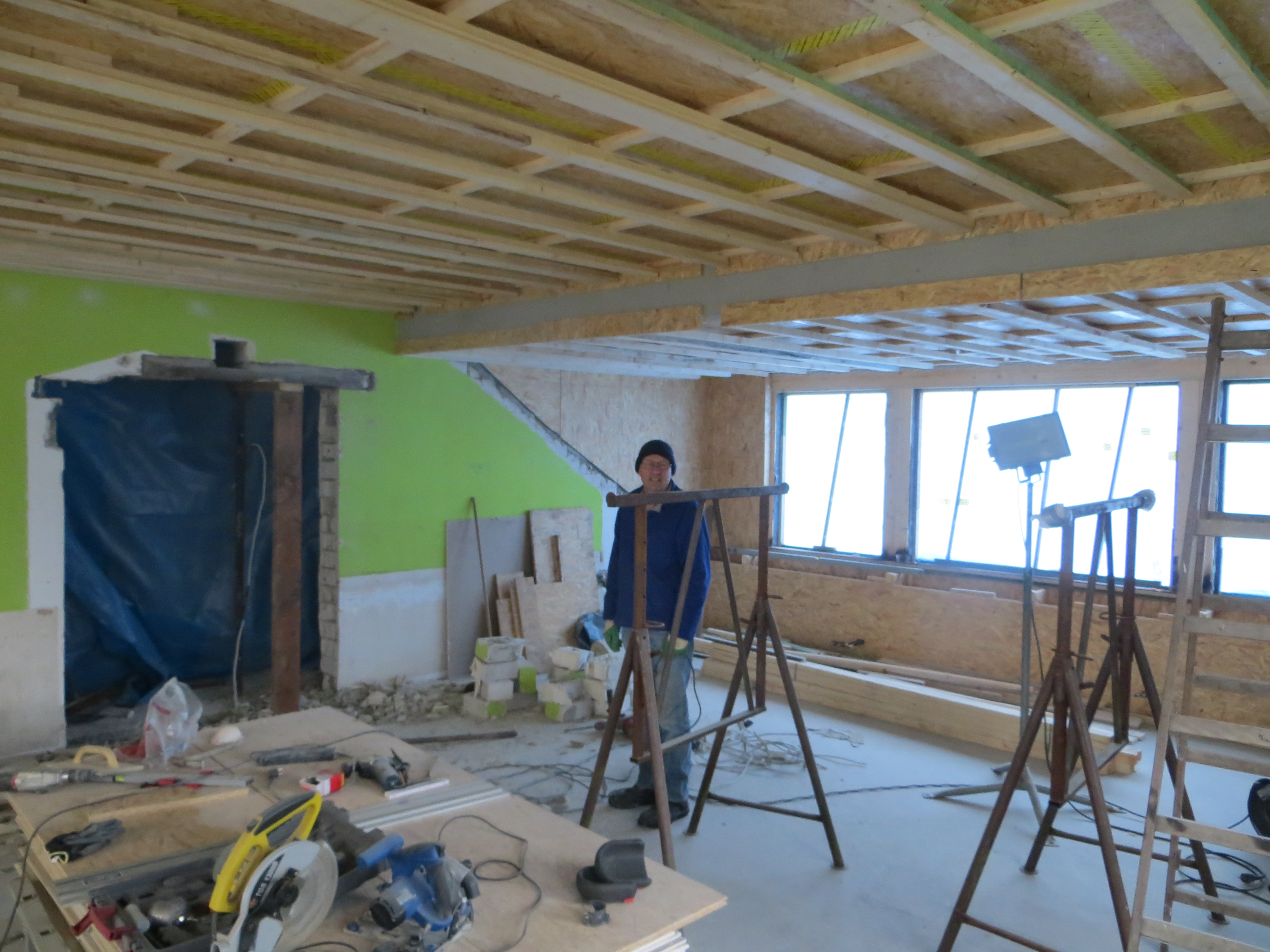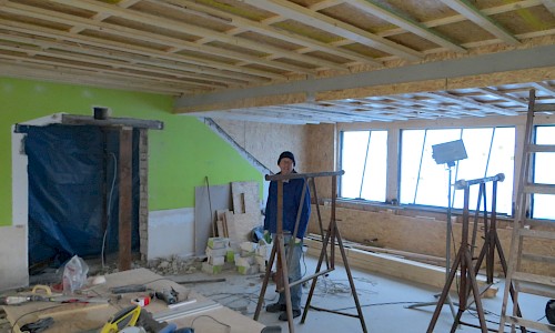 Inzwischen haben die Elektriker ihre „Strippen“ verlegt, Ende Februar werden die Fenster geliefert und eingebaut. Danach kommt dann der weitere Ausbau mit „Rigips-Platten“. Die Planungen sehen den Abschluss der Innenarbeiten für Ende März vor.