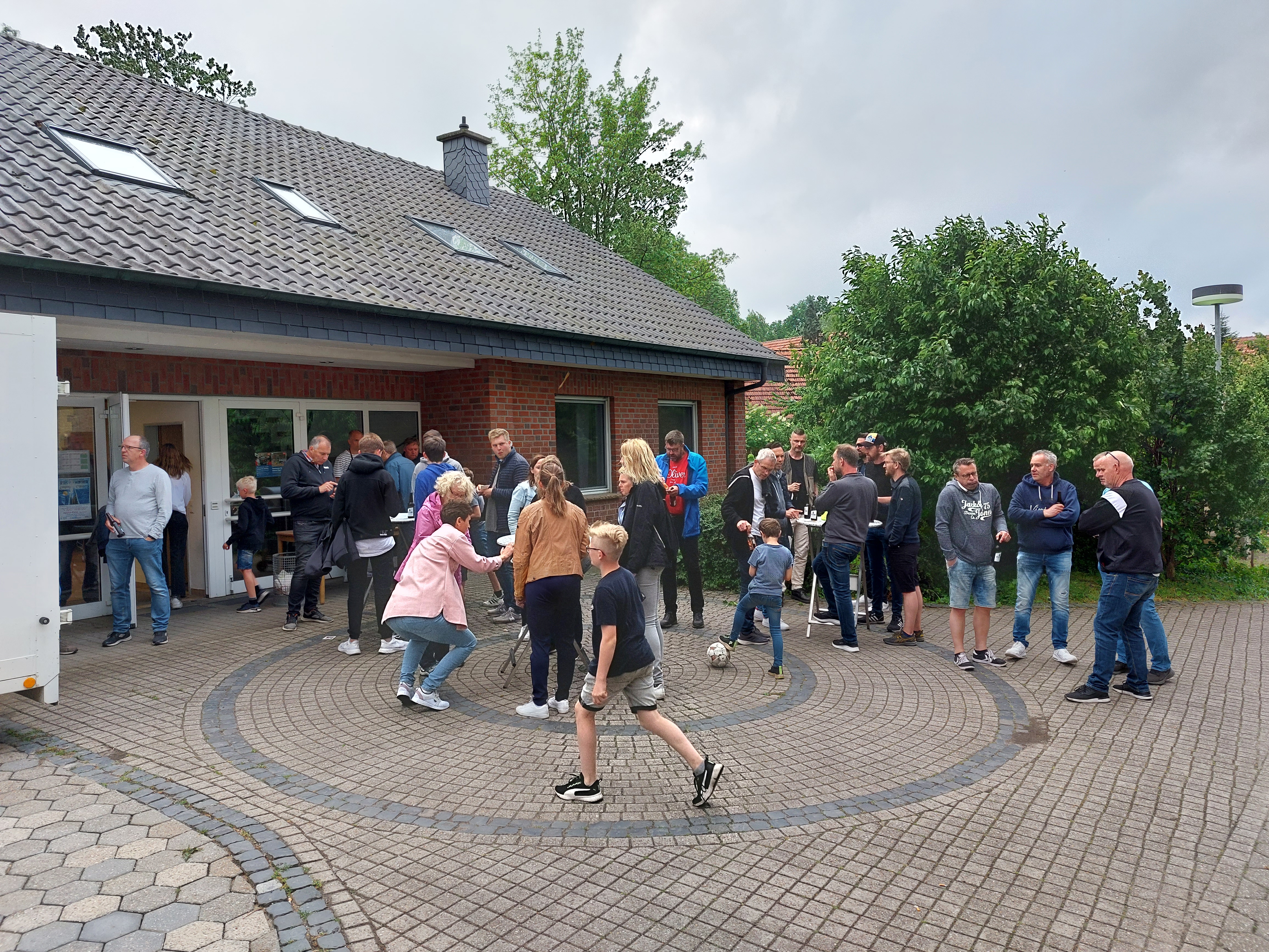 Die Dankeschön-Party des IVU im Dorftreff am letzten Freitag für die Helferinnen und Helfer der beiden Projekte "Jugendraum" und Radweg K 38" war gut besucht. Trotz einiger "Konkurrenzveranstaltungen" in Form von Hochzeitsfeiern, zu denen etliche Helferinnen und Helfer eingeladen waren, fanden sich ca. 70 Personen im Verlauf des Abends ein. Man merkte allen die Freude an, sich in einer solchen Runde mal wiederzusehen. Etwas, was man durch Corona doch lange vermisst hatte. So bildeten sich an den Stehtischen schnell kleine Gruppen, die den angebotenen Getränken und Bratwürstchen bereitwillig zusprachen.