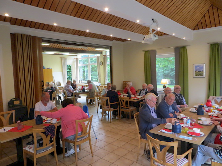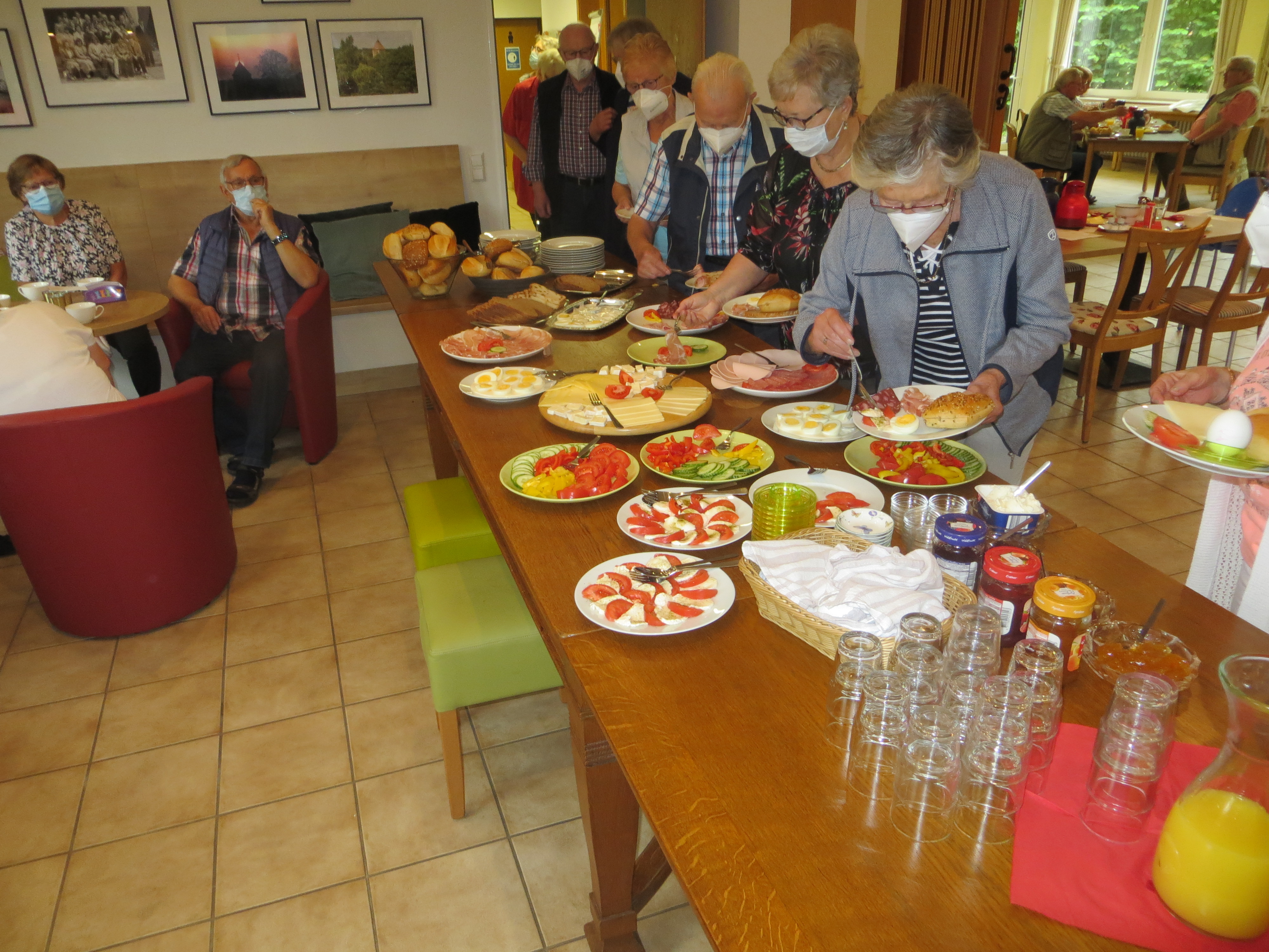 Am Dienstag, dem 7.7.2021, war es so weit. Nach knapp 18-monatiger Pause öffnete das Frühstücks-Buffett im Dorftreff wieder seine Pforten. Und die 30 Plätze, die aufgrund der Corona-Einschränkungen maximal zur Verfügung standen, waren schnell vergeben. Sofort nach Bekanntwerden der Pläne zur Wiedereröffnung gingen die Anmeldungen bei Helga Vorbrink und August Dieckmann ein.