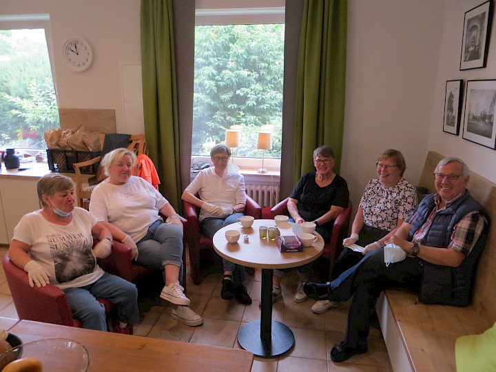 Auch die Tatsache, dass neben der Anmeldepflicht weitere einschränkende Regelungen galten, konnte die Gäste nicht abhalten. So saßen dann beim Frühstück nur Geimpfte und Genesene beisammen. Und das einzige Kind war getestet. Alle hatten vor Betreten ihren Status nachgewiesen. Zwei Gäste, die ihren zunächst Impfnachweis vergessen hatten, mussten ihn noch von zu Hause nachholen. Im Dorftreff wurde Maske getragen, nur am Tisch durfte sie abgenommen werden. Nach kurzer Begrüßung durch das Service-Team und Vorstellen der geltenden Regeln konnte dann in bekannter Form üppig gefrühstückt werden.