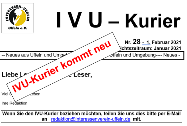 Der Interessen-Verein hat sich daher entschlossen, aus dem Inhalt der Homepage jeden Monat einen „IVU-Kurier“ zusammenzustellen, den man dann mit einem Knopfdruck herunterladen und bei Bedarf ausdrucken kann. Um den Aufwand auch für die Redaktion gering zu halten, nehmen wir die Artikel in chronologischer Reihenfolge, so wie sie erschienen sind, hängen sie aneinander und verzichten auf eine weitere Gliederung. Der älteste Artikel erscheint also zuerst, der jüngste am Schluss der Ausgabe. Damit ist der Aufwand für uns auf ein Maß reduziert, das leistbar ist.