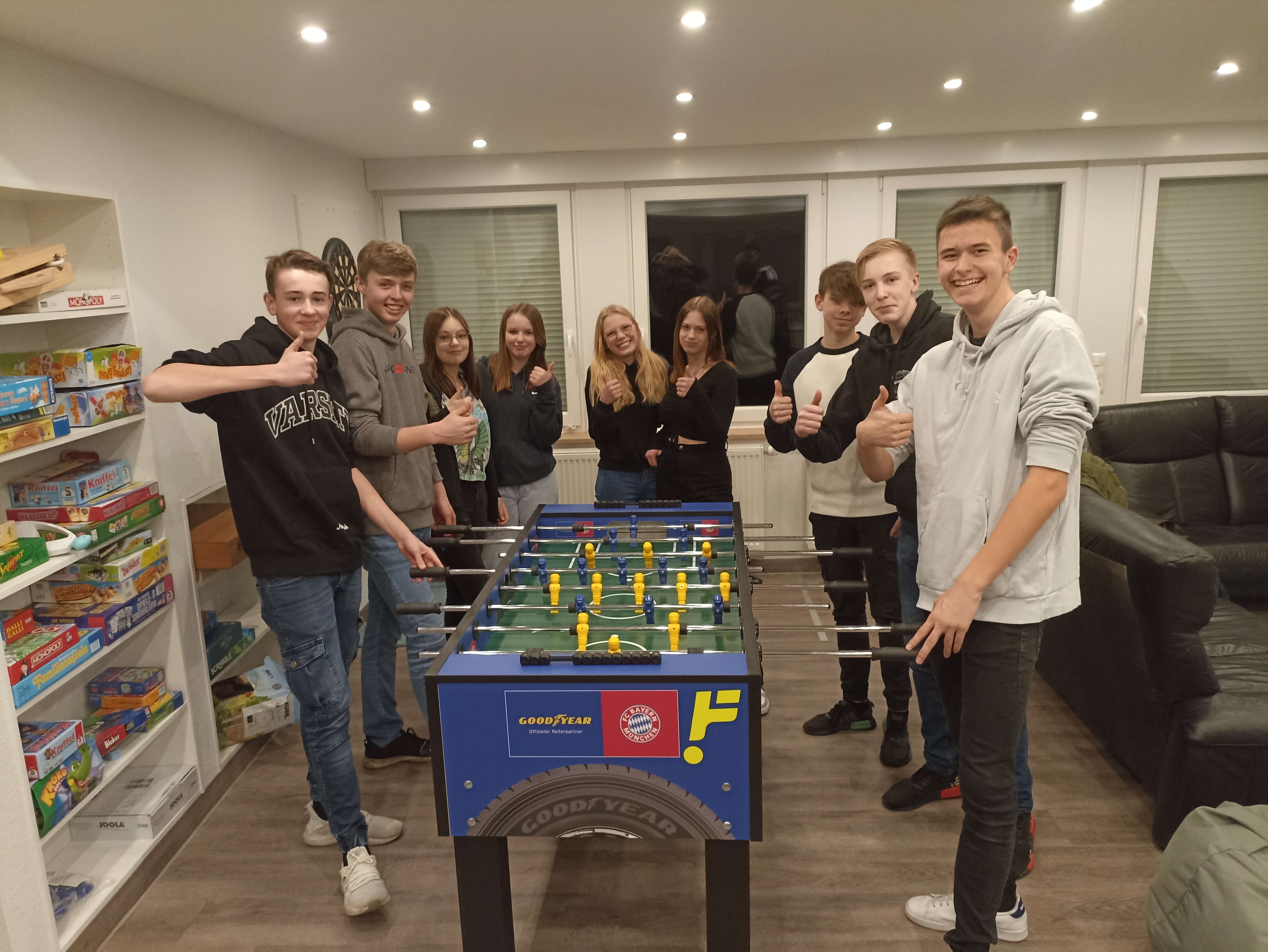 Der von der Fa. Forstmann gespendete Kicker für den Jugendraum ist bei den Jugendlichen gut angekommen. Ein farbenfrohes, stabiles Gerät, mit dem das Kickern richtig Spaß macht. Das ist die einhellige Meinung der Uffelner Jugend, die sich im Jugendraum im Dorftreff trifft. Und die Jugend des SV Uffeln kann sich ebenfalls freuen, denn sie hat den alten CAJ-Kicker aus dem Jugendraum erhalten, der ebenfalls noch gut in Schuss ist. Er steht nun im Sportheim. In den Farben passend zum SV Uffeln, schwarz-gelb.