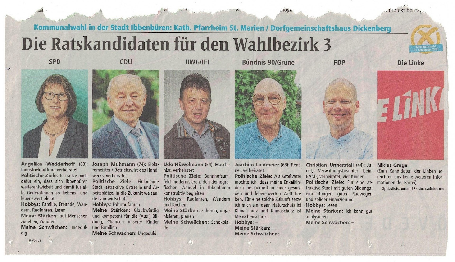 Uffeln gehört zum Wahlbezirk 3, gemeinsam mit dem Dickenberg. In der Ausgabe vom 19. August hat die IVZ die Ratskandidaten im Wahlbezirk 3 veröffentlicht.