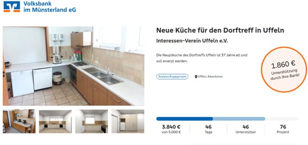 Die Spende auf der Plattform hat einen höheren Wert, da die Volksbank jede Spende bis 50 € verdoppelt. Für Spenden über 50 € ist die Co-Spende auf 50 € gedeckelt. Diese Co-Spenden gibt es so lange, bis das Spendenziel von 5000 € erreicht ist.