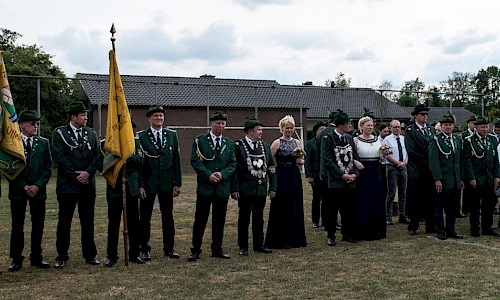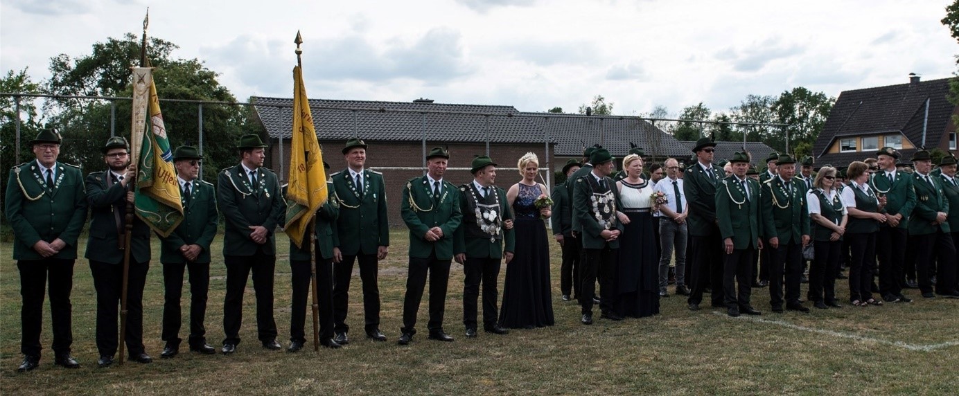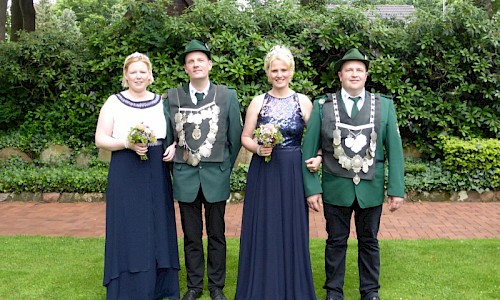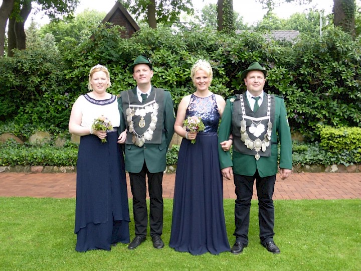 Beim Königschießen am 1. Juni hatte es bis tief in die Nacht gedauert. Erst mit dem 284. Schuss fiel der Vogel und Christian Rekers war neuer Schützenkönig. Christian Helmer wählte er zu seinem Vizekönig. Am Freitag drauf wurde ab 17.00 Uhr anlässlich des 150-jährigen Jubiläums des Vereins unter allen noch lebenden Schützenkönigen der Kaiser ausgeschossen. Hier fiel der Vogel schneller und nach gut einer Stunde stand der Kaiser fest. Ämterhäufung war das Ergebnis. Der diesjährige Vizekönig Christian Helmer, der 2015 selbst König war, wurde Jubiläumskaiser.