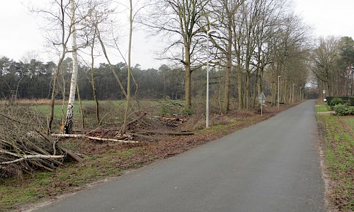 Wallhecke an der Ostenwalder Straße zurückgeschnitten.