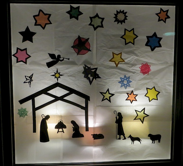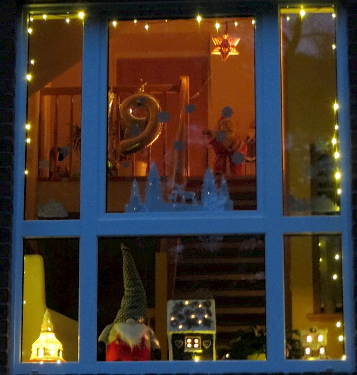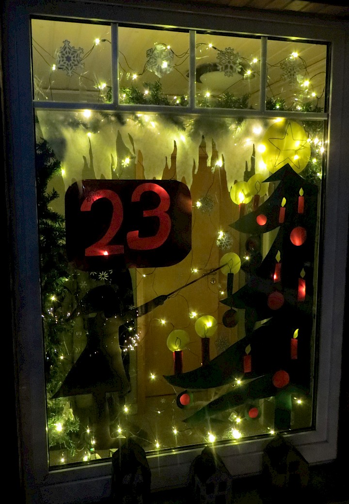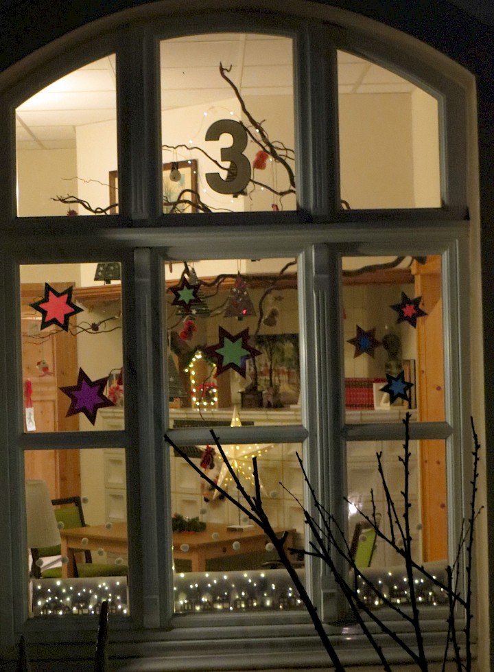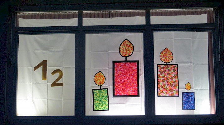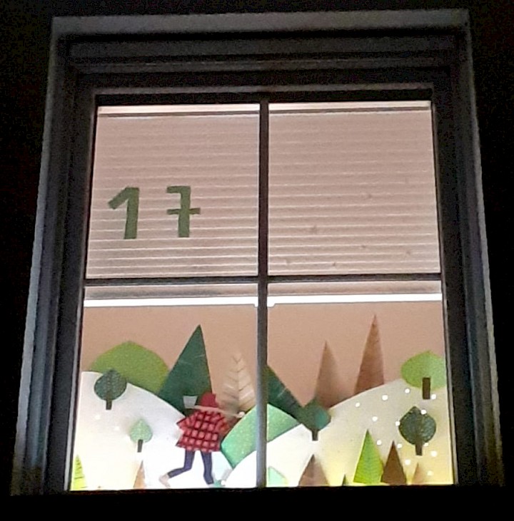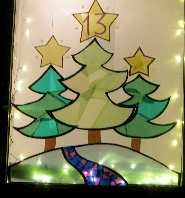 Ein schönes Motiv für die Eröffnung des Kalenders. Zu sehen im Fenster auf der Rückseite des Pfarrheims.