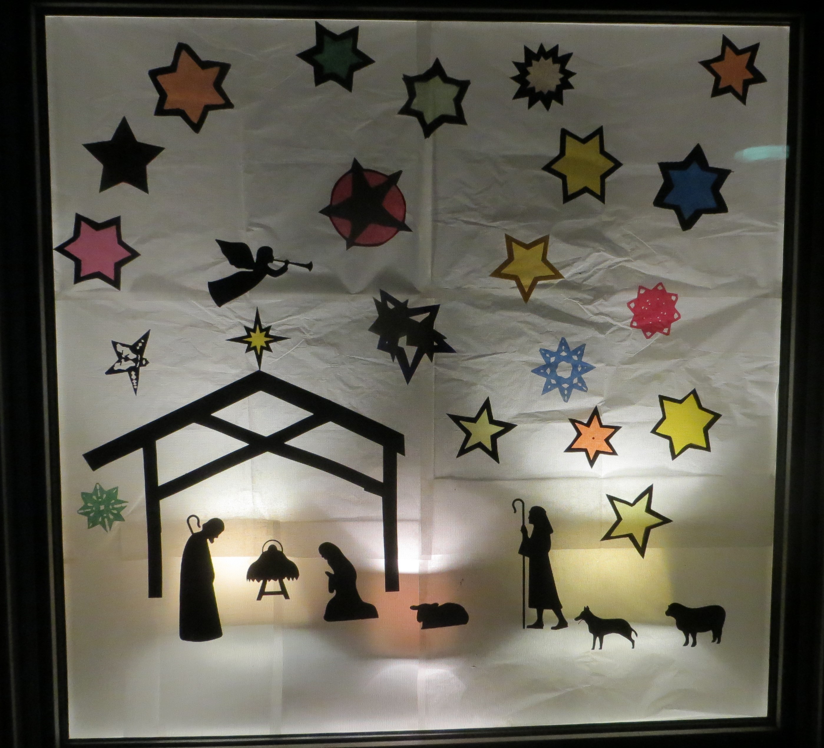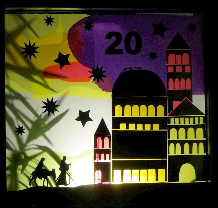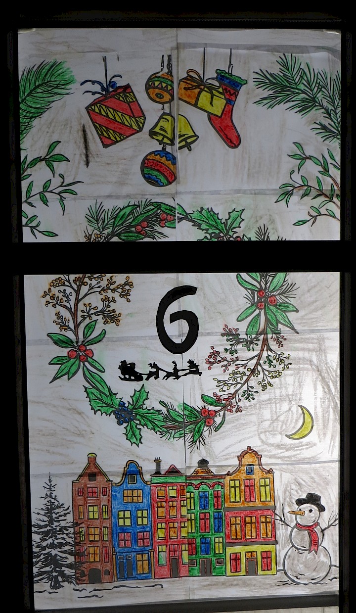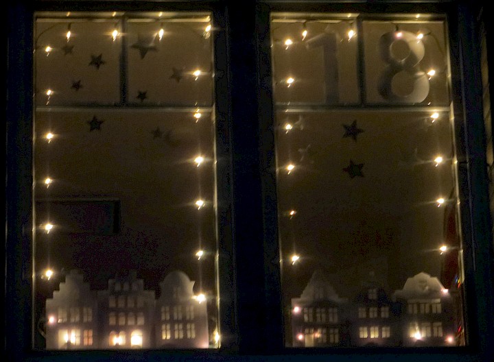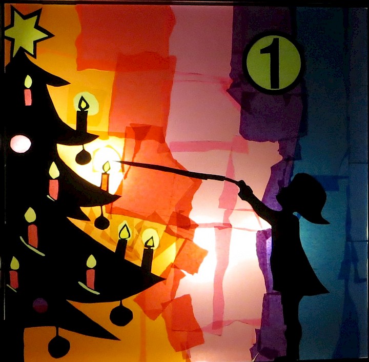 Ein schönes Motiv für die Eröffnung des Kalenders. Zu sehen im Fenster auf der Rückseite des Pfarrheims.