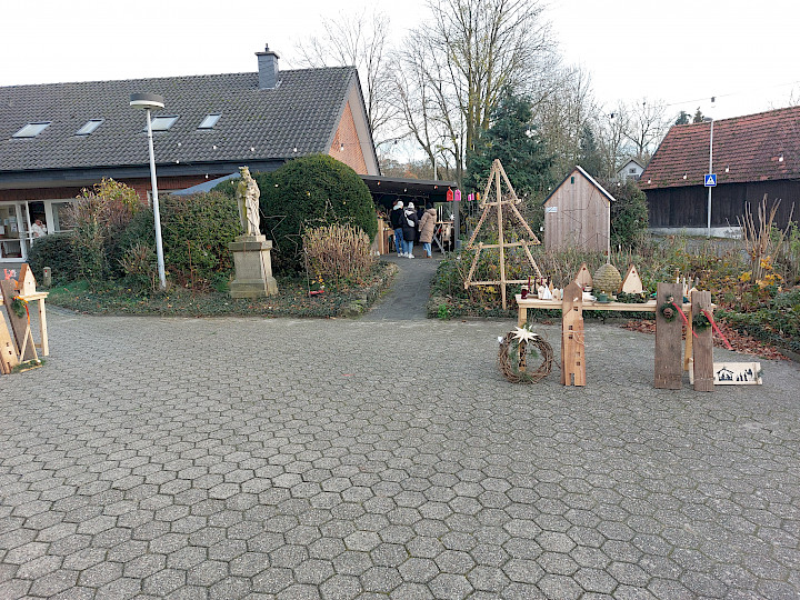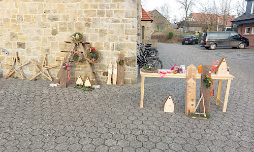 Auf dem Kirchplatz standen lediglich die größeren Teile aus dem Angebot wie geschweißte Sterne und Holzarbeiten. Sie stießen zwar auf großes Interesse, aber niemand hielt sich länger dort auf als notwendig. Insbesondere die aus Moniereisen geschweißten Sterne fanden trotzdem reißenden Absatz. Schon am frühen Nachmittag waren alle verkauft.