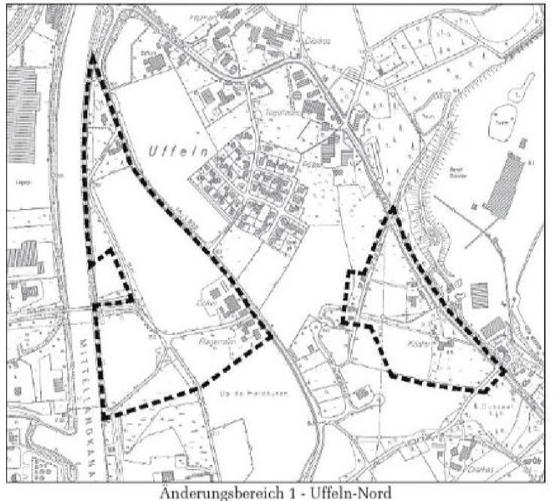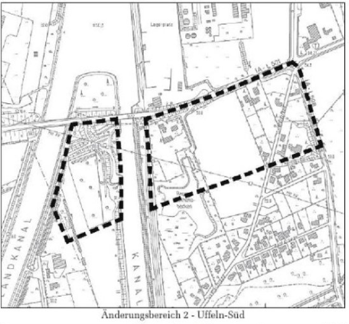 In den Skizzen sind die betreffenden Flächen jeweils gestrichelt umrandet. Damit haben sich die ausgewiesenen Industrie- und Gewerbeflächen in Uffeln verkleinert. Einerseits dürften sich landwirtschaftliche Vorhaben in diesen Gebieten damit leichter umsetzen lassen. Andererseits gelten sie nun baurechtlich wieder als Außenbereich und unterliegen damit den einschlägigen baurechtlichen Bestimmungen.