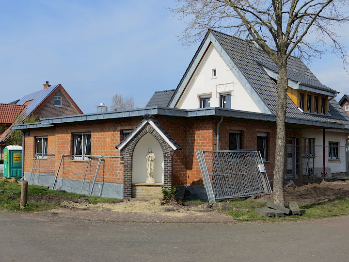 Maria wird also ihren Platz behalten und Teil des Flüdderts bleiben. Zurzeit mitten in den Bauarbeiten, aber wenn das Haus fertig ist, wird Familie Zilinksi gemeinsam mit den Flüdderanern das Umfeld des Muttergottes-Häuschens neu gestalten. Mitte des Jahres dürfte es wohl werden.