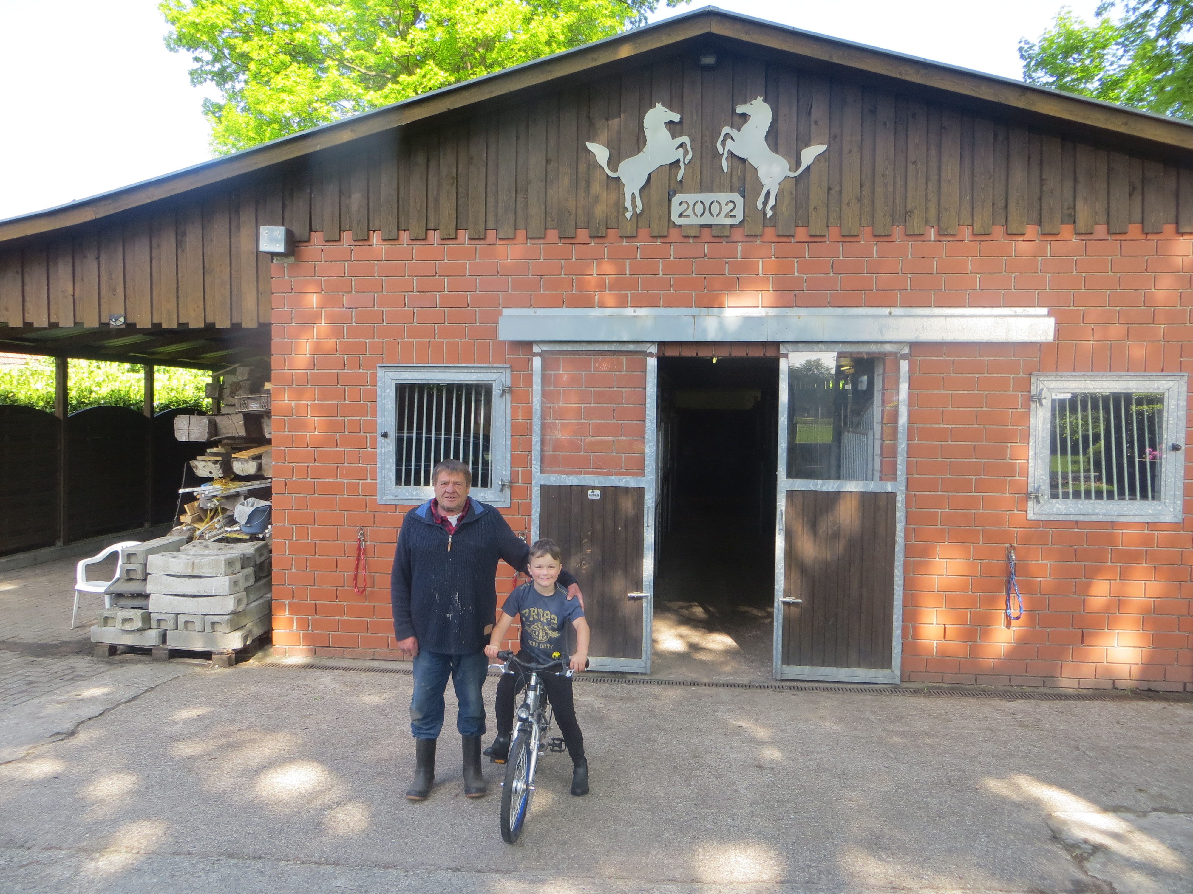 Nun ist Michael Brink Rentner geworden, hat Zeit und nutzte direkt die Gelegenheit und pachtete den Stall. Seit seinem 8. Lebensjahr geht Michael mit Pferden um. Schon als kleines Kind hat er seinen Großvater begleitet, wenn der im Wald mit seinem Pferd Holz rückte. Später hatte er dann immer sein eigenes Pony bzw. Pferd. Und nun auch noch seinen eigenen Stall. Die Freude darüber sieht man ihm an, wenn er dies erzählt.