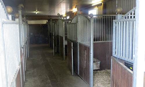 Den Stall hat er nach und nach ausgebaut. Von anfangs zwei auf inzwischen 8 Boxen, in die auch fremde Pferde eingestellt werden können. Zurzeit sind alle Boxen belegt, mit seinen eigenen und Ponys bzw. Pferden von Haltern aus der Umgebung.