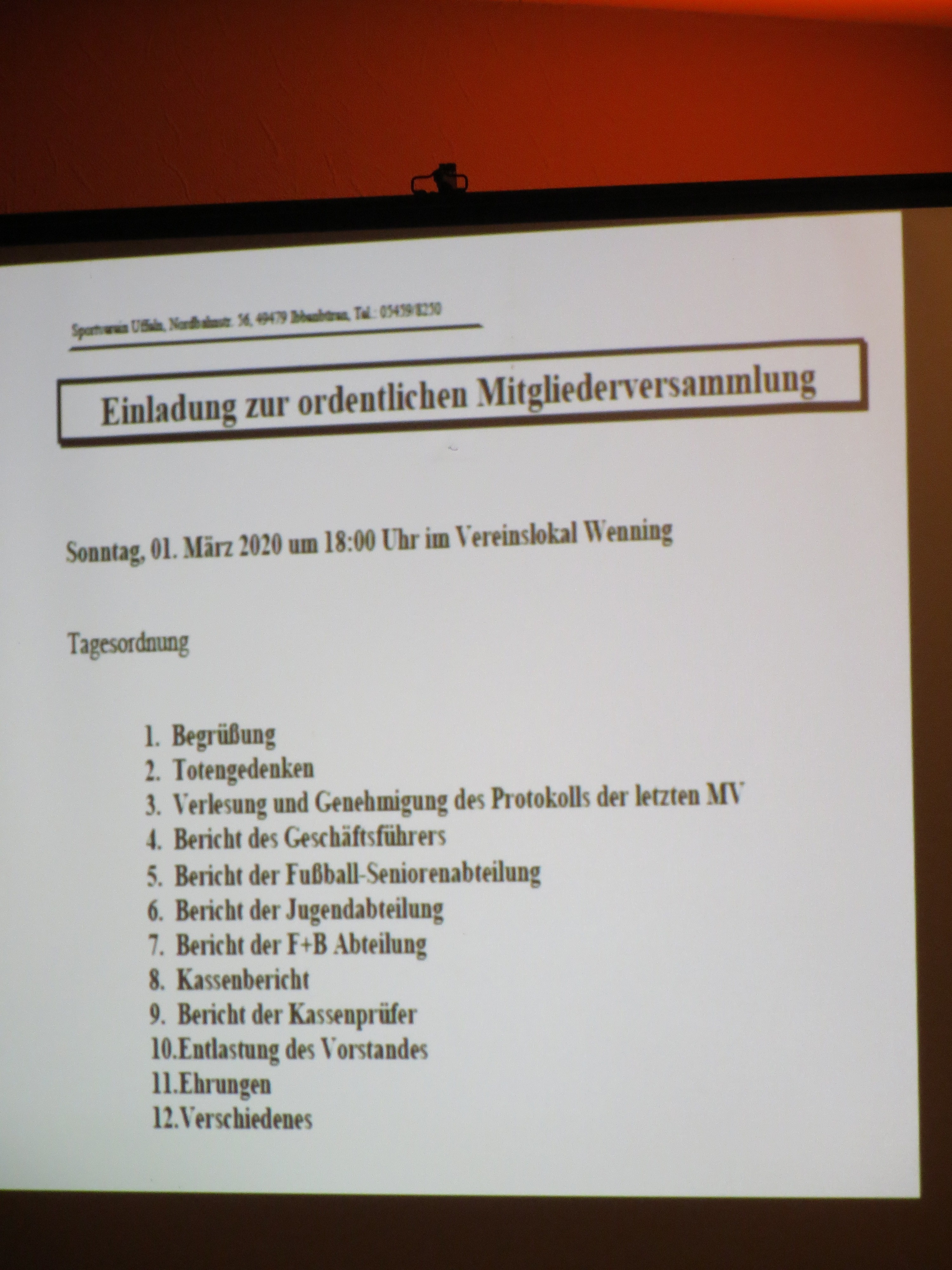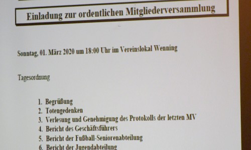 3. März 2020Mitgliederversammlung des SVU im Vereinslokal Wenning-Wieter.