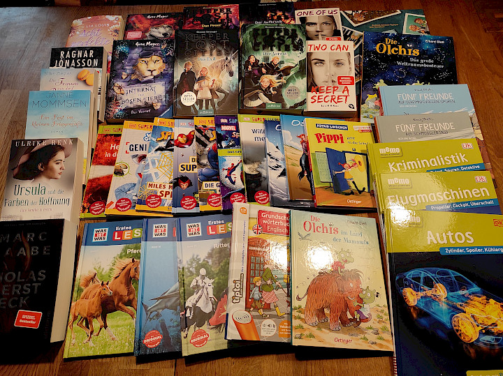 Hell und freundlich ist der neue Büchereiraum, geworden. Zugleich ist die Zeit genutzt worden, um neue Medien zu beschaffen. Dabei hat auch der Interessen-Verein geholfen. Wie im Vorjahr hat er wieder 500 € für Kinder- und Jugendmedien zur Verfügung gestellt. Das nebenstehende Foto zeigt eine kleine Auswahl der vom IVU gesponserten Neuanschaffungen.