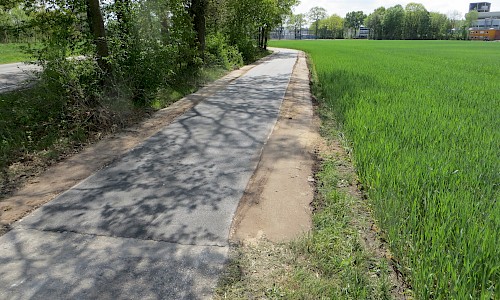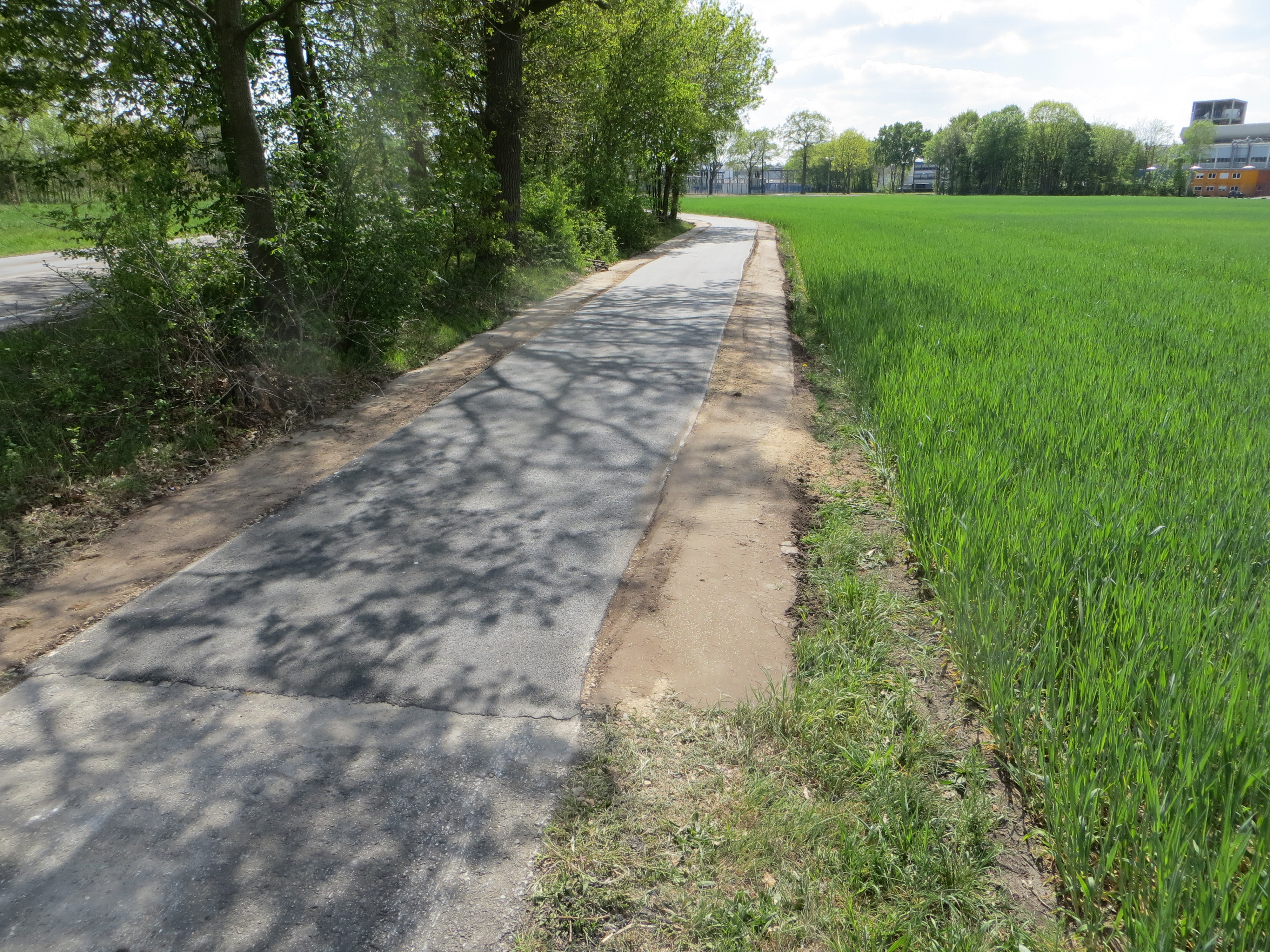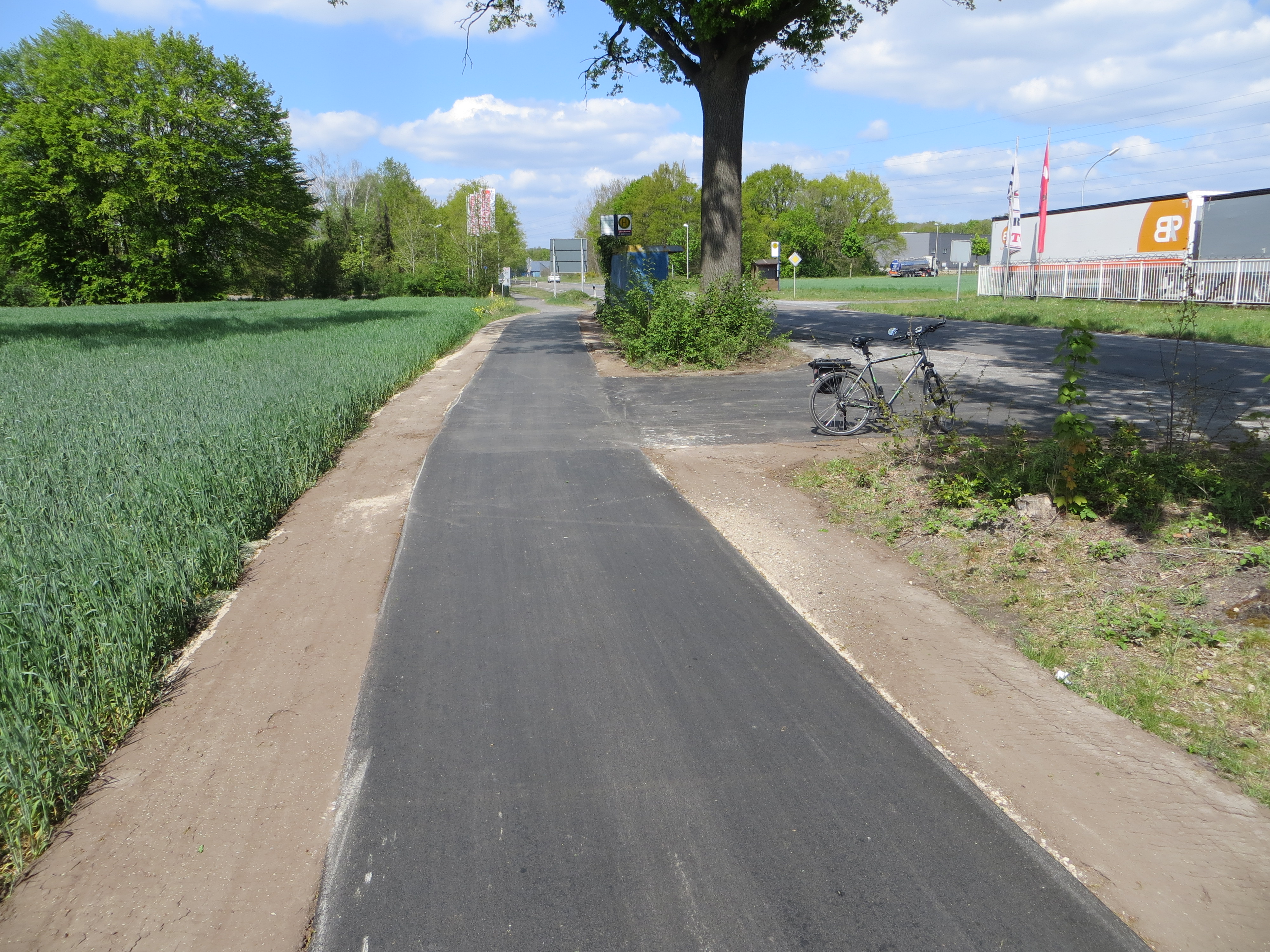 Nun ist der Radweg teilsaniert worden. Im Kurvenverlauf kurz vor der Einmündung zur Fa. Nouryon (vorm. Akzo) und in Höhe der Tankstelle Kreling sind neuer Unterbau und eine neue Decke aufgetragen worden. Dadurch ist die gesamte Packlage jetzt so verdickt, dass es wohl Jahre dauern wird, bis die Wurzeln sich wieder bemerkbar machen. Das Warnschild "Radwegschäden" steht zwar noch vor Ort, aber der Schaden ist behoben.