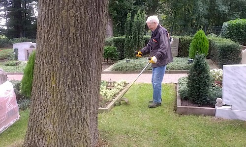 Immer am ersten Montag im Monat trifft sich die Rentner-Gruppe zu Pflege des Uffelner Friedhofs, vom Frühjahr bis in den Herbst. In der Regel findet der letzte Einsatz im Oktober statt.