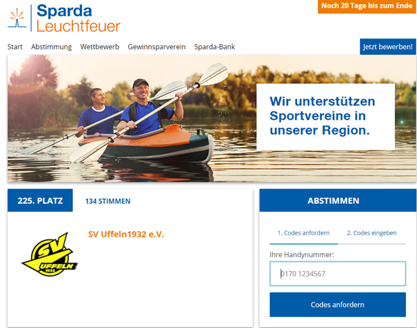 Hier ist der Link zur Abstimmungsseite des SV Uffeln. https://www.spardaleuchtfeuer.de/profile/sv-uffeln1932-e-v/