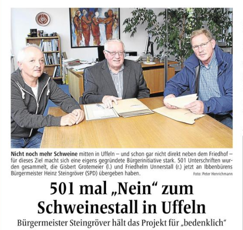Auch der neue Bürgermeister Dr. Schrameyer hatte sich im Wahlkampf eindeutig gegen gewerbliche Schweineställe in Uffeln positioniert.