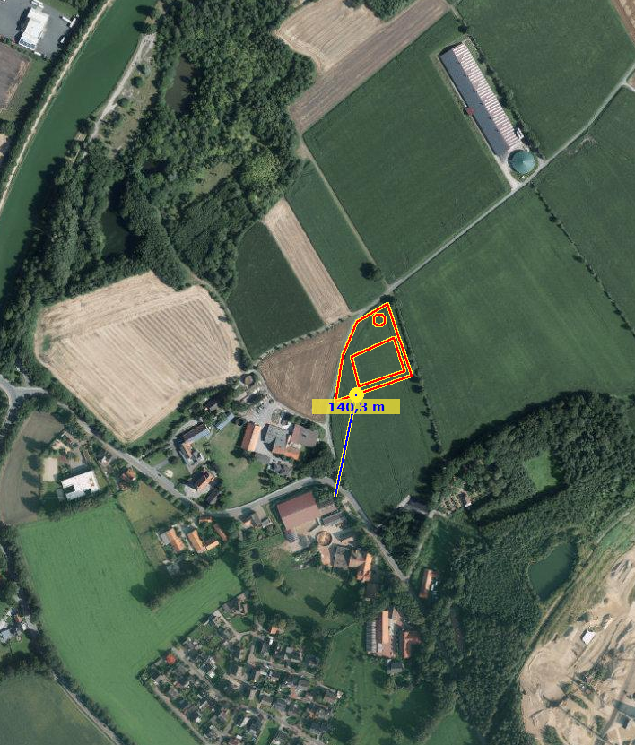 Dieser neu beantragte Stall, entsprach dem alten und sollte auf demselben Flurstück nur etwa 150 m weiter westlich entstehen, also in größerer räumlicher Entfernung zur vorhandenen Hofanlage.