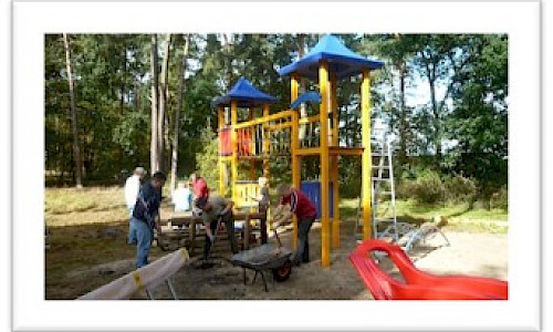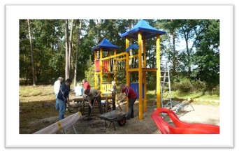 Josef Helmer gab erneut seine Zustimmung zum weiteren Betrieb des Spielplatzes in seinem Waldstück. So begann man mit dem Abriss des alten Spielplatzes. Die Freude war groß als der Sattelschlepper mit den neuen Spielgeräten eintraf. Dank zahlreicher Helfer, auch von der Firma Akzo Nobel, wurden sie an nur einem Tag aufgebaut.