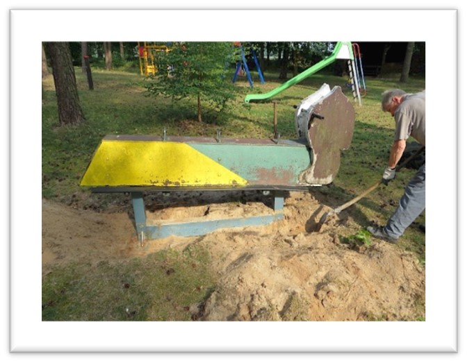 So langsam nagte der Zahn der Zeit an den selbstgebauten Spielgeräten. Zudem machte sich ein Umbruch bei den Helfern bemerkbar. Viele engagierte Anwohner, deren Kinder mittlerweile erwachsen waren, zogen sich langsam zurück. Die jüngeren Väter übernahmen das Ruder. Der Interessen - Verein stiftete für 458 € das erste neue Spielgerät seit Jahren, eine Wippe. Die Stadt Ibbenbüren stellte zudem einige ausrangierte Spielgeräte vom Aasee zur Verfügung, die nach einer Überarbeitung durch die Anwohner aufgestellt wurden.