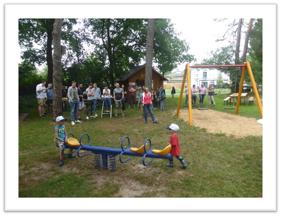 Im März 2018 konnte die Sperrung aufgehoben werden. Offiziell wurde der Spielplatz im Juni 2018 wiedereröffnet. Als kleines Dankeschön für die zahlreichen Spender wurde anschließend ein Einweihungsfest gefeiert. Bei einem gemütlichen Umtrunk wurden Bausätze verschiedener Vogelhäuser für die Kinder bereitgestellt, die teilweise heute noch den Spielplatz säumen. Mittlerweile werden sie auch gut genutzt, von Meisen, Spatzen und Trauerschnäppern.