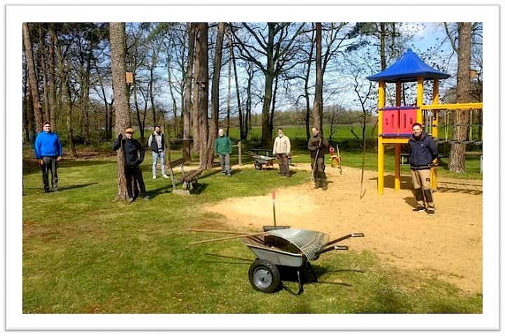 Jedes Jahr um Ostern herum traf man sich auf dem Spielplatz zum Arbeitseinsatz. Es wurden kleinere Reparaturen durchgeführt, aufgeräumt und Wald- und Gartenarbeiten erledigt. Anschließend klang der Tag gemütlich in der Gemeinschaft aus.