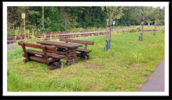 Die alten Bänke und Tische der Schutzhütte wurden überarbeitet und am neuen Radweg aufgestellt. Dieser wurde ebenfalls vom Interessenverein Uffeln realisiert.