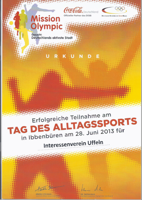 Die Stadt Ibbenbüren stand mit Rottenburg am Neckar im Finale des Wettbewerbs „Mission Olympic – gesucht wird Deutschlands aktivste Stadt 2013“. Der Sieger wurde mit einem Preisgeld von 35.000 € für den Breitensport belohnt.