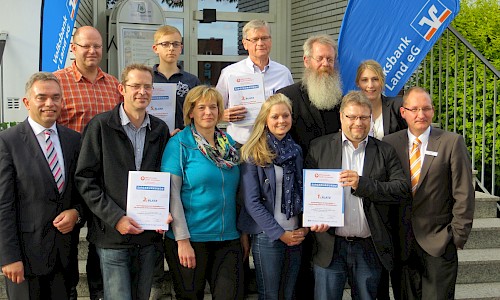 Der Interessen-Verein Uffeln hat sich an der Spendenaktion der Volksbank Tecklenburger Land mit seinem Projekt „Bürgerradwege –Orte und Menschen verbinden“- beteiligt. Insgesamt hatten sich 53 Vereine bei dieser Aktion beworben. Beim Voting für die einzelnen Projekte erhielt der Interessen-Verein im Bereich Ibbenbüren die meisten Stimmen. Aus 5 Projekten mit den meisten Stimmen wählte dann eine Jury die endgültige Sieger-Reihenfolge aus. Für die Sieger stand eine Preisausschüttung in Höhe von 1.000 bis 3.000 € zur Verfügung. Der Interessen-Verein belegte den 3. Platz und erhielt ein Preisgeld in Höhe von 2.000 €.