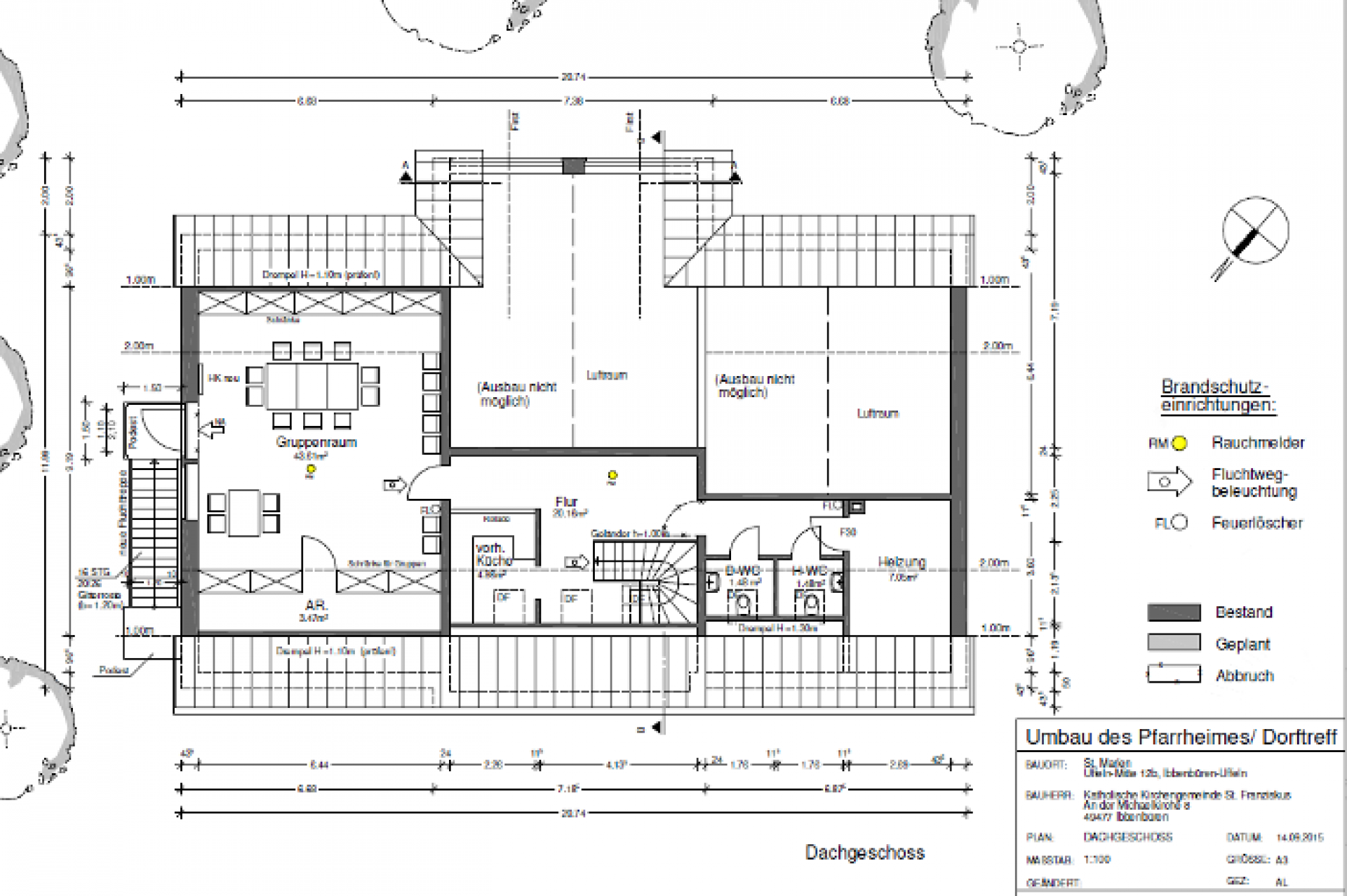 Nach einer Überarbeitung der Projektskizze wurde das Projekt in Abstimmung mit dem Kirchenvorstand sogar noch umfangreicher. Es sollte jetzt nicht nur ein Teil des Erdgeschosses des Pfarrheims samt Toilettenanlage in das Projekt einbezogen werden, sondern auch das Dachgeschoss. Der im Obergeschoss vorhandene große Raum sollte als Gruppenraum ausgebaut werden. Dazu war insbesondere der Einbau eines zweiten Fluchtweges (Außentreppe) erforderlich. Das erhöhte natürlich die Kosten deutlich.