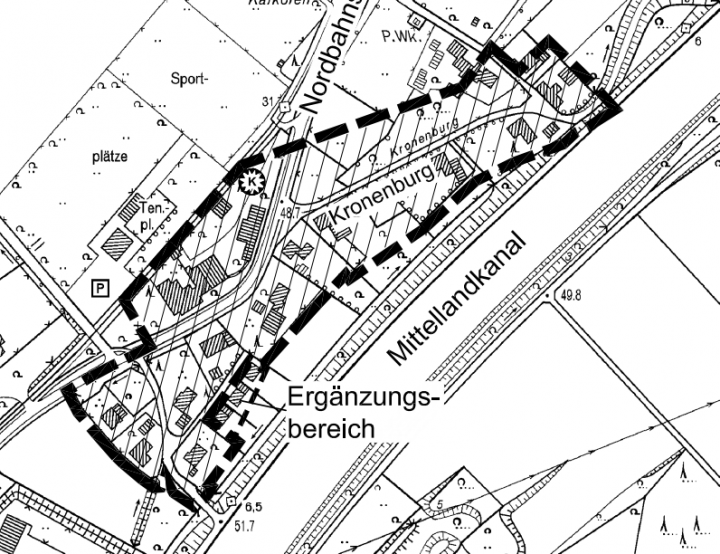 Durch die Verlegung auf die andere Kanalseite wurde ein größeres Flurstück, das direkt an den Bereich der Außenbereichssatzung "Kronenburg" anschloss und im Eigentum der Stadt stand, von der „Last“ Wasserleitung befreit und bebaubar, wenn die baurechtlichen Voraussetzungen geschaffen würden.