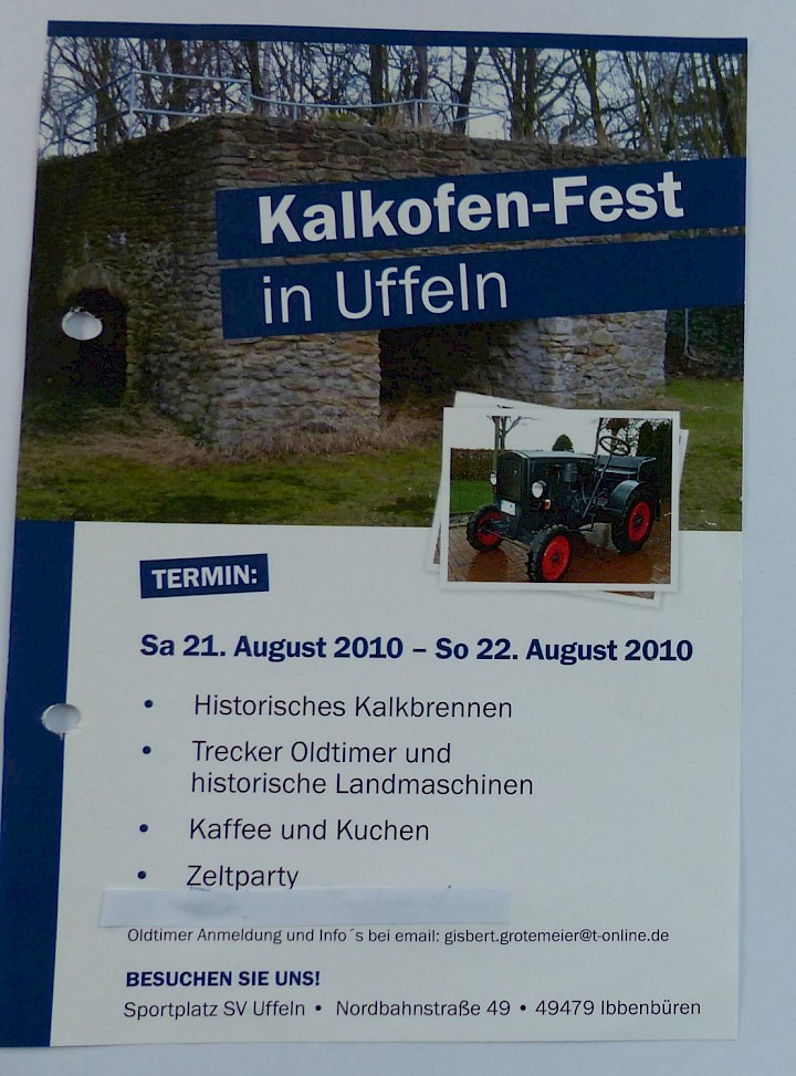 Neben dem Interessen-Verein beteiligten sich an der Organisation der Fastnachtverein, der Schützenverein und der Sportverein. Es sollte ein 3-tägiges Fest von Freitag, den 20.August bis Sonntag den 23.August 2010 für Uffeln werden. Zum historischen Kalkbrennen wurde ein umfangreiches Rahmenprogramm für alle Altersklassen zusammengestellt.