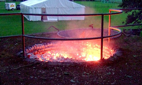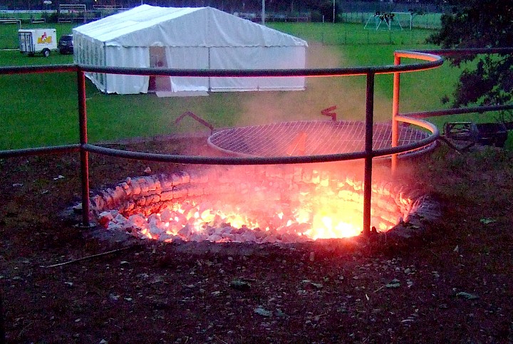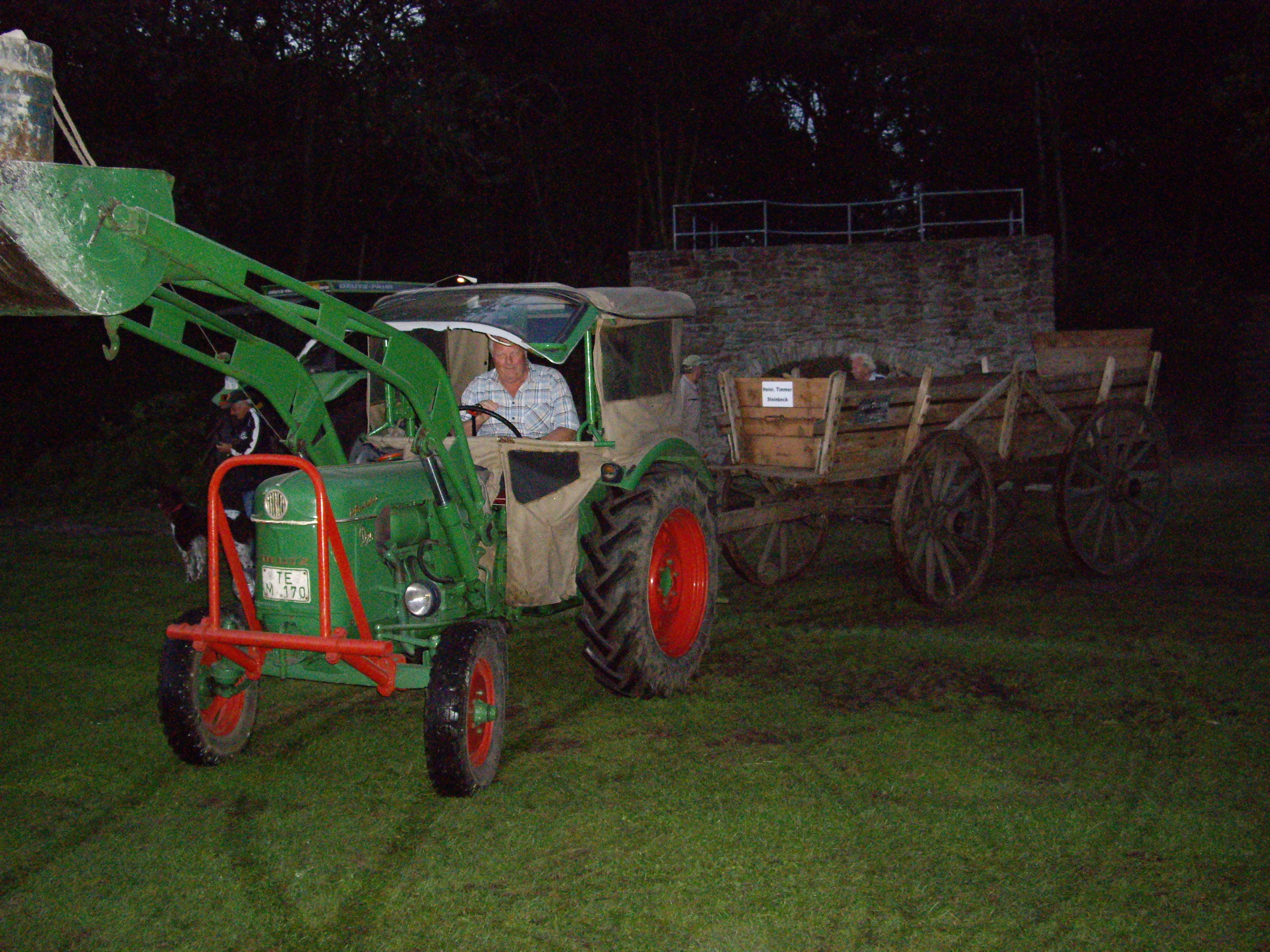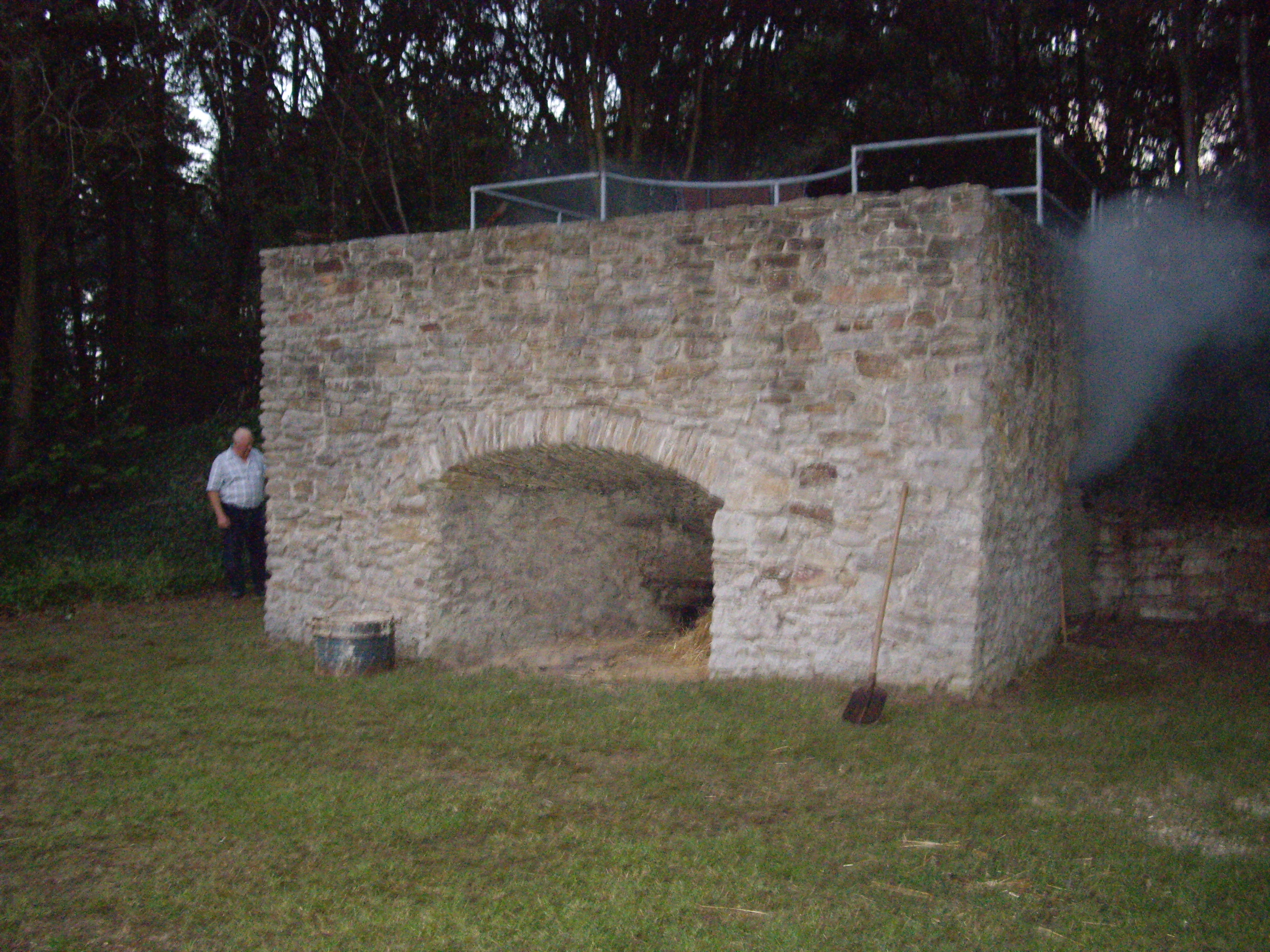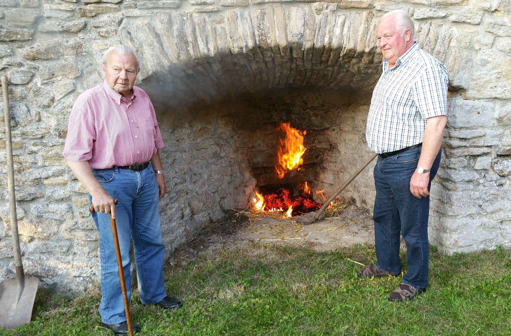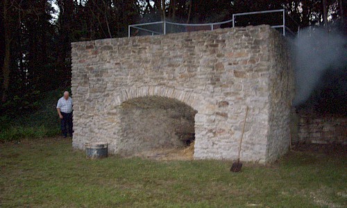 Am Freitag wurde der Kalkofen schichtweise mit Kalk und Kohle als Brennmaterial befüllt und am Abend angezündet. Dazu gehörte natürlich auch ein Fassanstich.