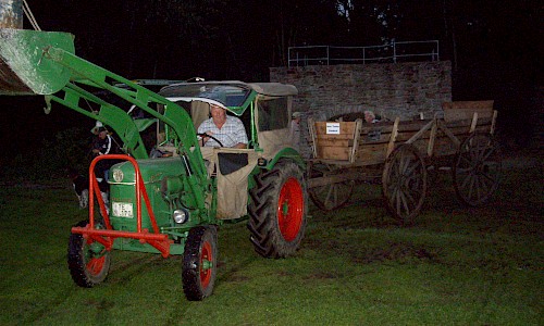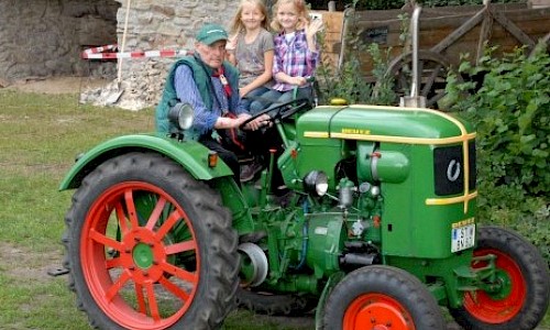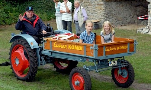Kaffee und Kuchen im Festzelt, Tanzvorführungen der Kindertanzgruppen des SVU, eine Hüpfburg, ein Kinderkarussell, Spielmöglichkeiten auf dem Festplatz und ein Dämmerschoppen mit Musik sorgten für Kurzweil. Weiterhin konnten auf dem Festplatz historische Landmaschinen bestaunt werden.