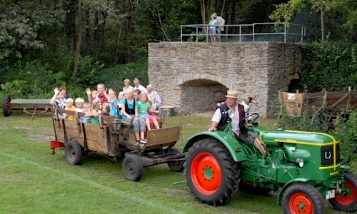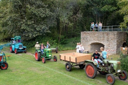 Am Sonntagmorgen feierten die Uffelner mit Pastor Greiwe einen Gottesdienst im Festzelt. Anschließend stand eine Oldtimershow mit vielen alten Traktoren und landwirtschaftlichen Maschinen auf dem Programm. Das Besucherinteresse war groß, so dass immer wieder, fast stündlich, Führungen und Erläuterungen zum Kalkbrennen im Kalkofen Wenning und über die Uffelner Kalkgeschichte stattfanden.
