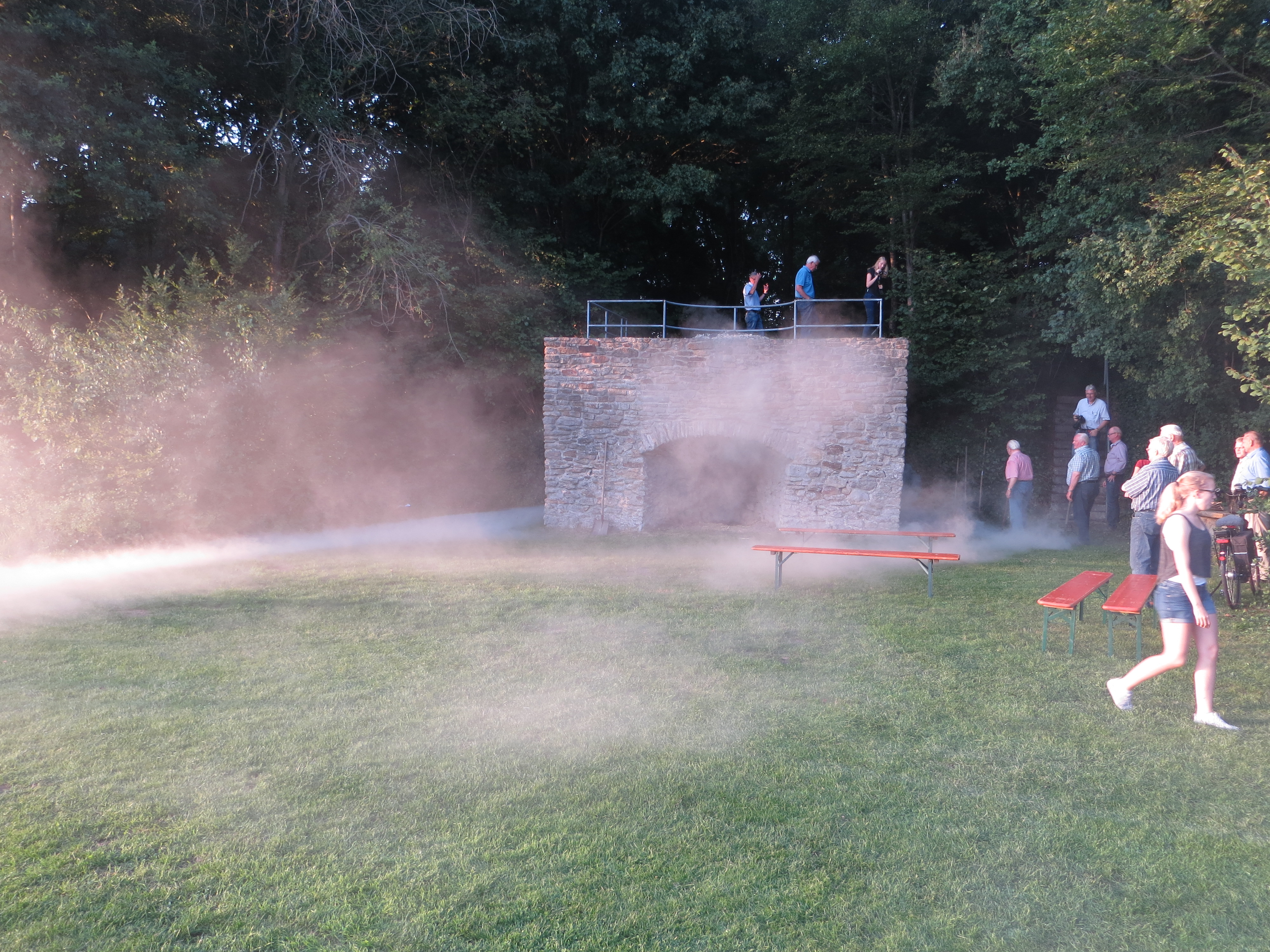 Im Mittelpunkt stand natürlich das Kalkbrennen im denkmalgeschützten alten Kalkofen Wieter-Wenning, der 1989 nach einer Renovierung durch den Fastnachtverein wieder eingeweiht wurde. Dazu wurde der Ofen bereits am Freitagabend angefeuert, nachdem bereits vorher Kohle und Kalk einfüllt worden waren. Zunächst qualmte es kräftig, aber dann brannte doch alles gut durch.