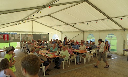 Bei bestem Wetter gab es am Samstag schon nachmittags einen großen Besucherstrom und abends eine Zelt-Party, die bei gutem Besuch lange anhielt.