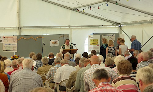 Mit Spannung erwartet wurde ein plattdeutscher Gottesdienst mit Pastor Felix Schnetgöke am Sonntagvormittag. Die zahlreichen Teilnehmer sangen und beteten kräftig mit, denn es waren zu Beginn die Texte der Messe in Plattdeutsch verteilt (hier im Download) worden. Anschließend gab es den obligatorischen Frühschoppen und zum Mittagessen Erbsensuppe.