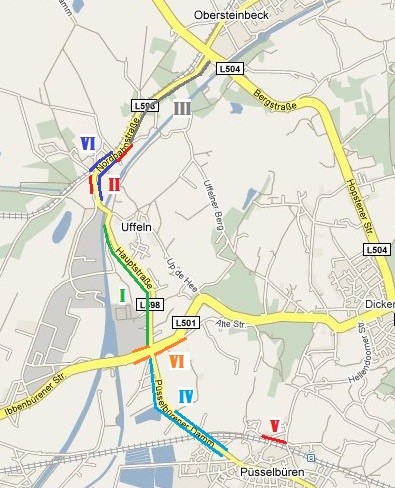 Als sich der Interessen-Verein Uffeln 2001 gründete, gab es in Uffeln, Ortsteil der fahrradfreundlichen Stadt Ibbenbüren, bis auf kleine Abschnitte (Kanalrampen), keine Radwege an den Hauptdurchgangsstraßen. Nachbarorte konnten nicht verkehrssicher über Radwege erreicht werden, ebenso nicht die zahlreichen Arbeitsplätze in den Uffelner Gewerbe- und Industriegebieten. Alle Radwege aus den Nachbarorten endeten in mehr oder weniger weiter Entfernung vor Uffeln.
