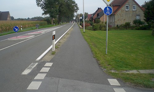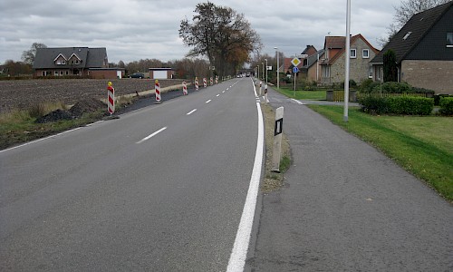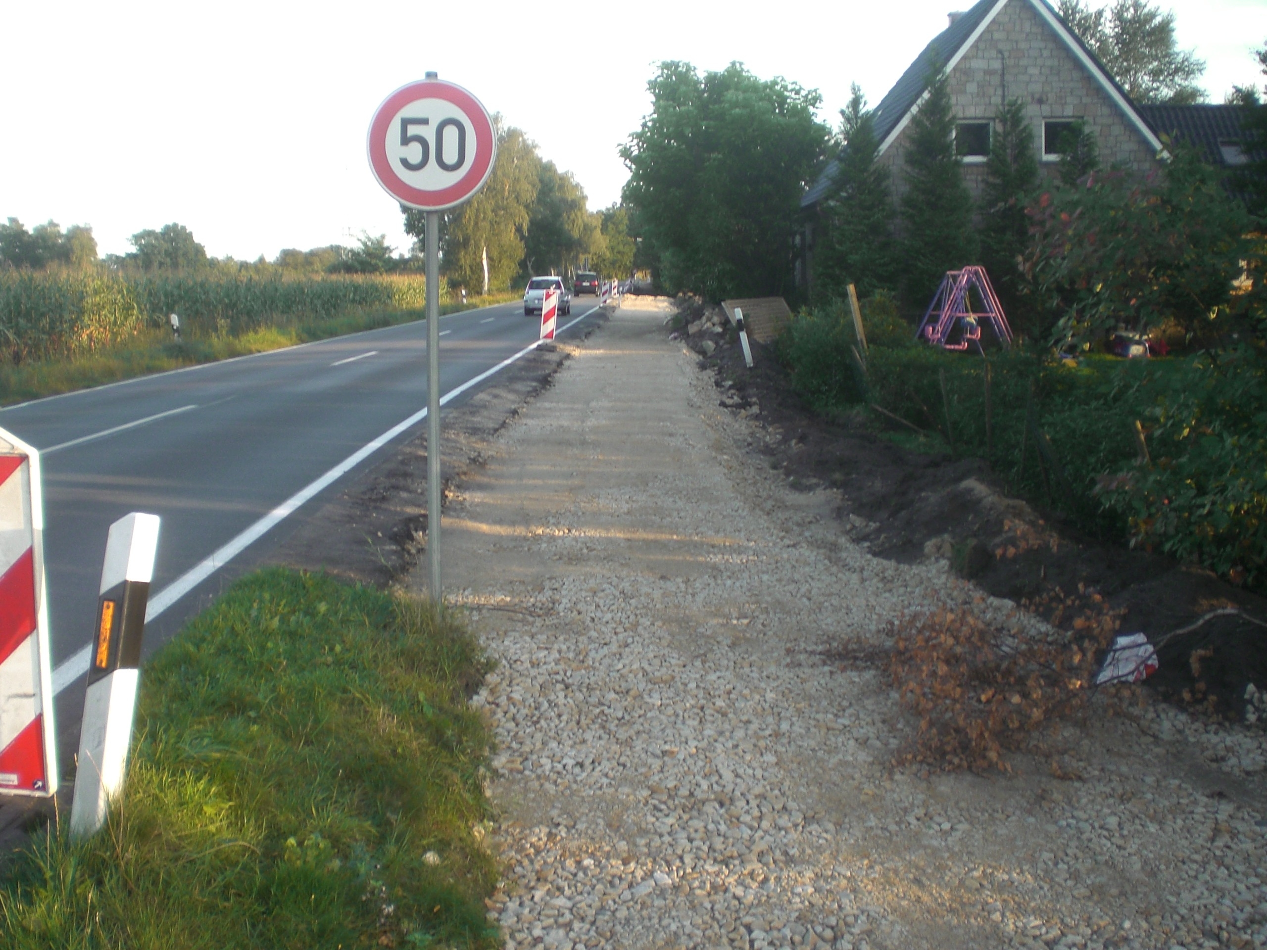 - davon 850 m einseitig der Straße als Zweirichtungsradweg, Breite 2,25 m, 8 cm Asphaltdecke