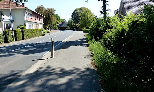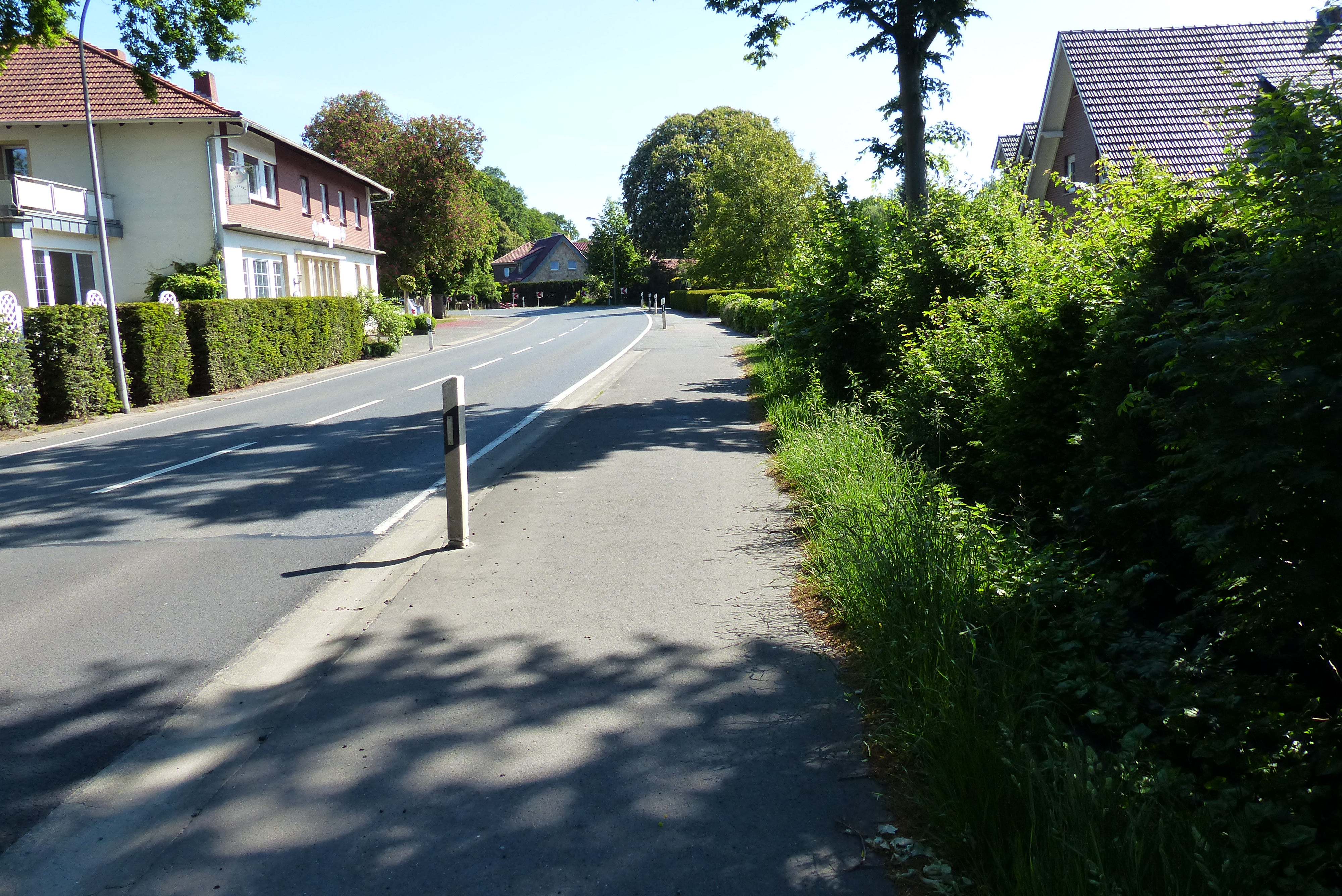 2002 hatte die Stadt Ibbenbüren einen gesplitteten Fußweg von Wenning bis zur Ostenwalder Straße gebaut. Von der Ostenwalder Straße bis zur Zeppelinstraße befand sich ein mäßig befestigter Fuß- / Radweg, der seinerzeit noch durch eine Leitplanke von der Fahrbahn abgetrennt war.