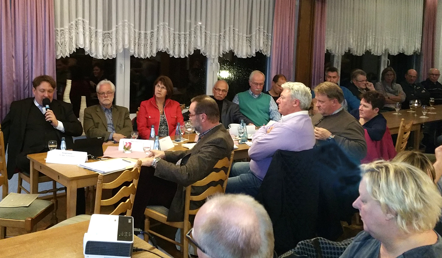 Für den IVU war dies Anlass, den neuen Bürgermeister Dr. Schrameyer, die Ratsfraktionen, die Fa. Woitzel, das städtische Bauamt sowie Vertreter des Umweltamtes des Kreises zu einer Informationsveranstaltung am 18.11.2015 in die Gaststätte Helmer einzuladen. Die Uffelner sollten umfassend über dieses Vorhaben informiert werden. Die Eingeladenen kamen und auch bei den Uffelnern stieß die Veranstaltung auf großes Interesse. Leider war die CDU aufgrund eines Terminversehens nicht vertreten.