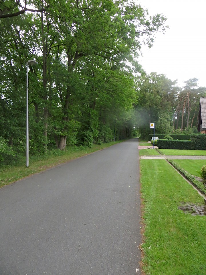 Die Siedlung "Am Flüddert" erreicht man von der Nordbahnstr. über die Ostenwalder Str., die hier beidseitig von Bäumen gesäumt wird. 400 m lang ist die Strecke, die man auch nehmen muss, wenn man die Bushaltestelle "Uffeln Bahnhof" erreichen will. Nach Gründung der Siedlung war die Strecke zunächst unbeleuchtet. Später wurde eine einzelne Straßenlaterne aufgestellt, dann, finanziert durch die Siedlung, eine weitere. Auch als die Straßenbeleuchtung in der Siedlung ausgebaut wurde, blieb die Zufahrt über die Ostenwalder Str. unbeleuchtet. Mit zunehmendem Fahrzeugverkehr wurde dies für Fußgänger und Radfahrer insbesondere in der Dunkelheit immer gefährlicher.Dies war Anlass für die Bewohner der Siedlung, sich persönlich an die Stadt zu wenden, doch mindestens eine weitere Leuchte ungefähr in der Mitte der Strecke aufzustellen.